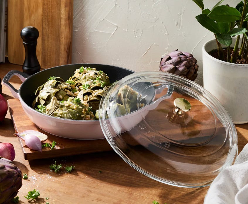 This 3.5 qt. Staub pot is one that I know I will use all the time in my kitchen. One of my clients has this size and because of how often I use it at her house I have added it to my spring list! There is a wide variety of colors but how darn cute is this peony pink?!